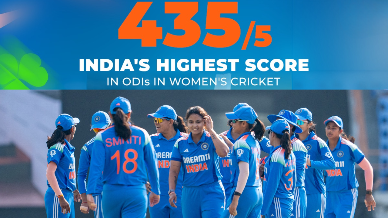 INDIAN WOMEN CRICKET TEAM ने टीम ने आज एक नया रिकॉर्ड बना दिया है। टीम ने आयरलैंड के खिलाफ तीसरे वनडे मैच में पहले बैटिंग करते हुए 50 ओवर में 435 रन बनाए। यह भारत का अब तक का सबसे बड़ा वनडे स्कोर है। साथ ही, यह वर्ल्ड में चौथे सबसे बड़े वनडे स्कोर के रूप में दर्ज हुआ है। इस लिस्ट में सबसे पहले न्यूजीलैंड है, जिन्होंने 2018 में आयरलैंड के खिलाफ 491 रन बनाए थे। भारत की कप्तान स्मृति मंधाना ने 80 गेंदों पर 135 रन बनाए। उनके साथ, प्रतीका रावल ने भी 129 गेंदों पर 154 रन बनाए।