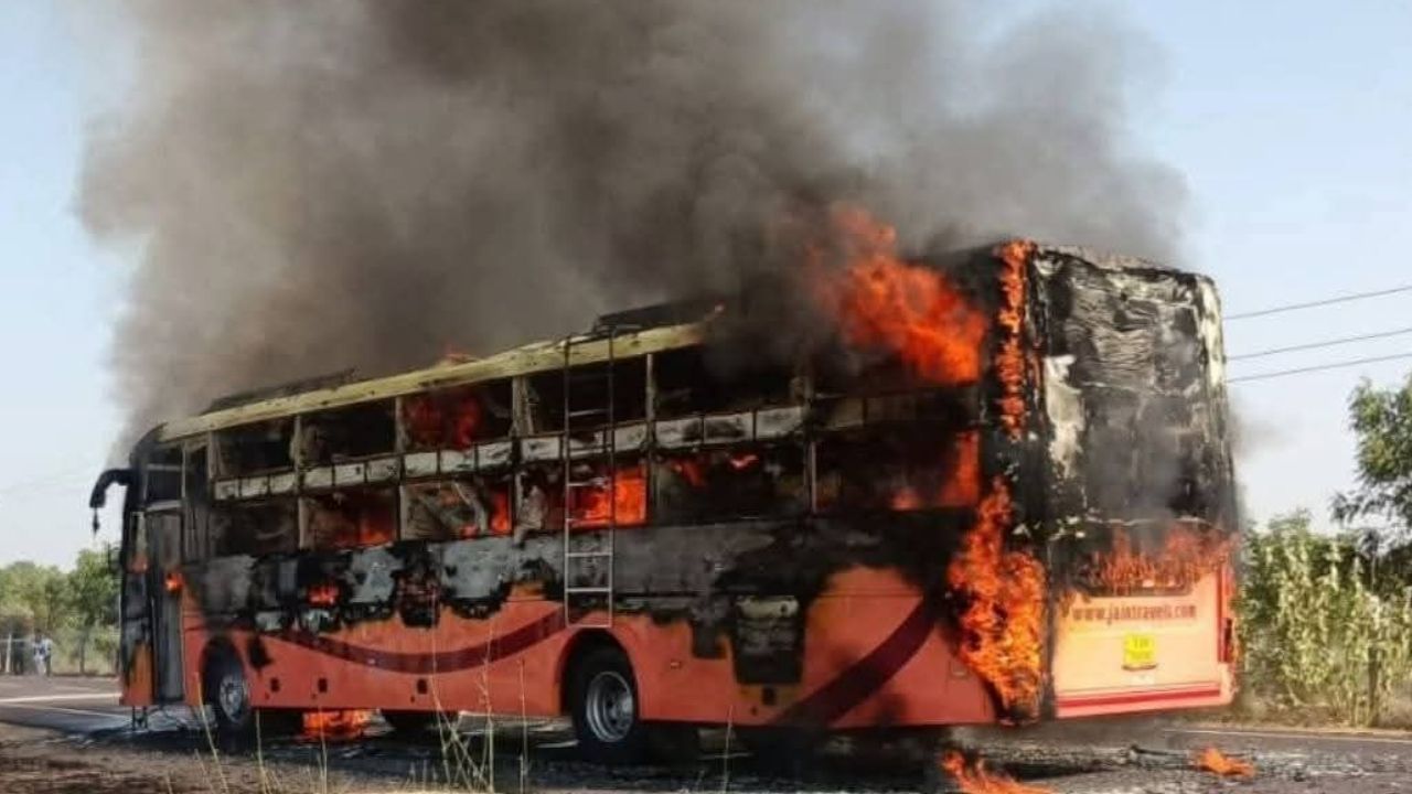 JAISALMER BUS FIRE ACCIDENT: कुछ ही मिनटों में पूरी बस धू-धू कर जली, यात्रियों में मचा हड़कंप