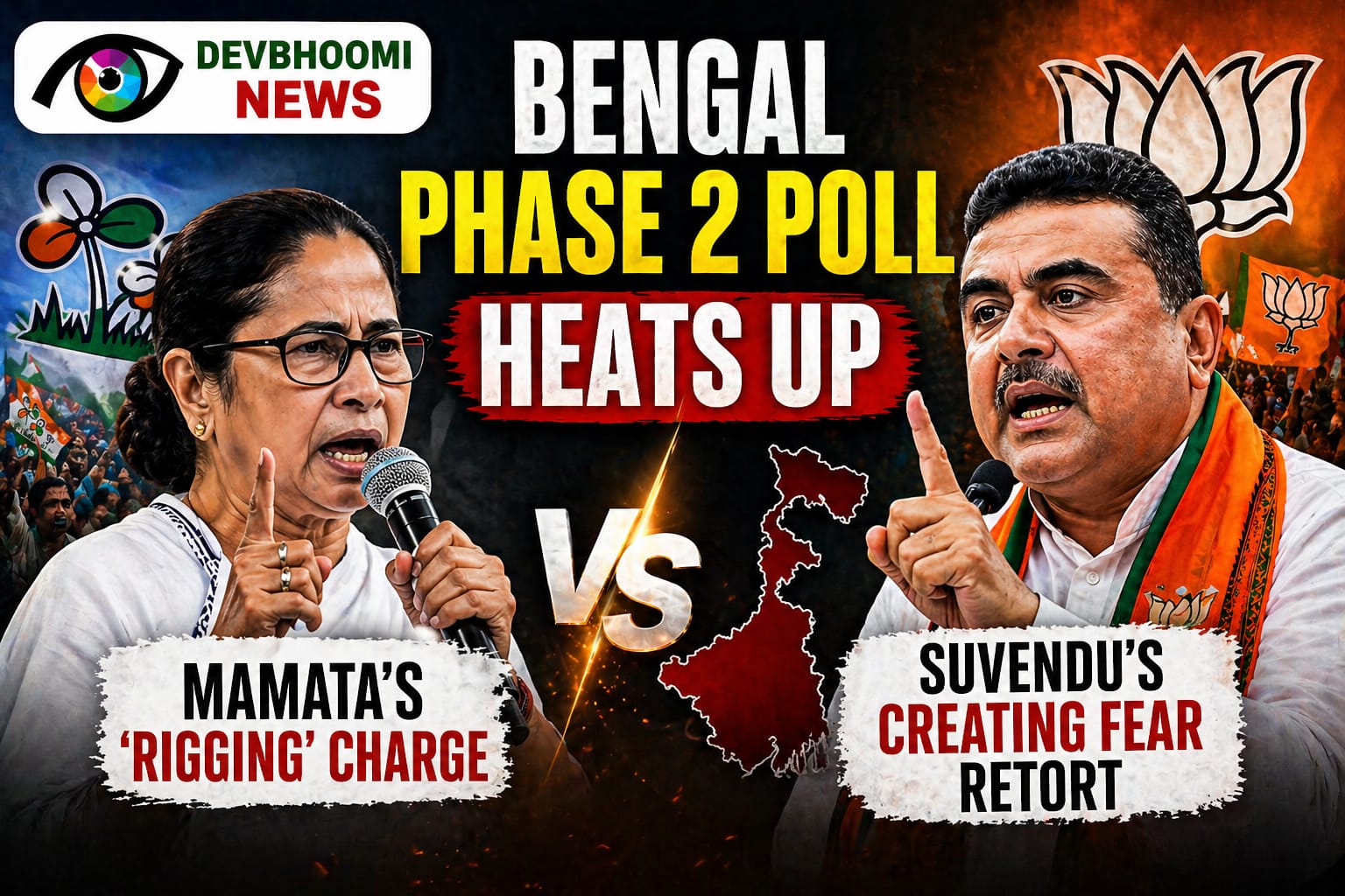 Responding sharply, BJP leader Suvendu Adhikari dismissed the Mamata Banerjee rigging charge, accusing her of attempting to “create fear” among voters. His counterattack reflects the escalating political rhetoric that has defined the Bengal elections.