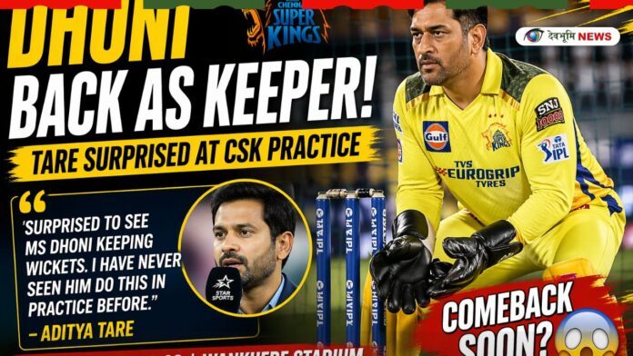 Former cricketer Aditya Tare revealed that he was surprised to see Dhoni donning wicketkeeping gloves during nets, something rarely seen in recent seasons. Speaking during a broadcast, Tare mentioned that Dhoni usually focuses on batting or light drills during practice, especially after dealing with injuries.
