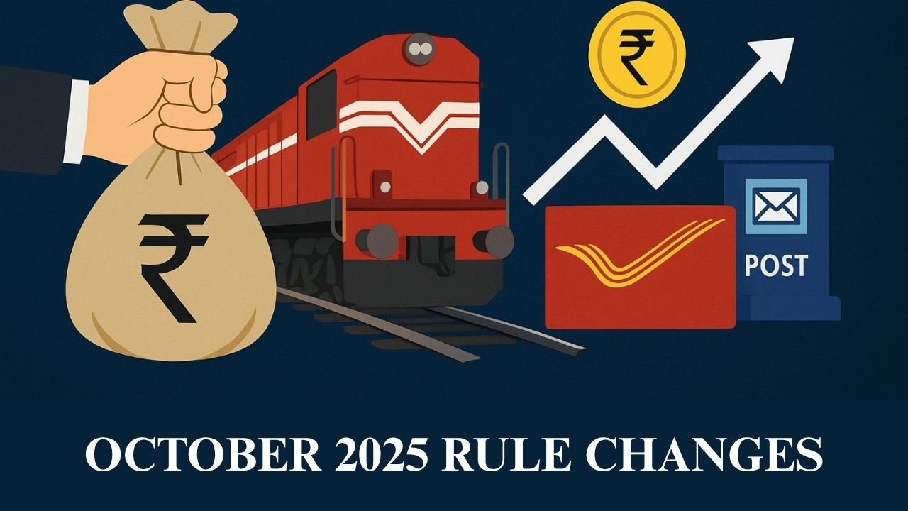 OCTOBER 2025 RULE CHANGES: आज, 1 अक्टूबर 2025 से भारत में कई महत्वपूर्ण नियम लागू हो गए हैं, जिनका सीधा असर आम जनता की रोजमर्रा की जिंदगी, वित्तीय लेन-देन, यात्रा और पेंशन व्यवस्था पर पड़ेगा। इन बदलावों का मकसद सेवाओं को ज्यादा पारदर्शी, सुरक्षित और प्रभावी बनाना है। रेलवे टिकट बुकिंग से लेकर पेंशन निवेश, डाक सेवाओं और बैंकिंग तक, ये नियम लाखों लोगों को प्रभावित करेंगे।