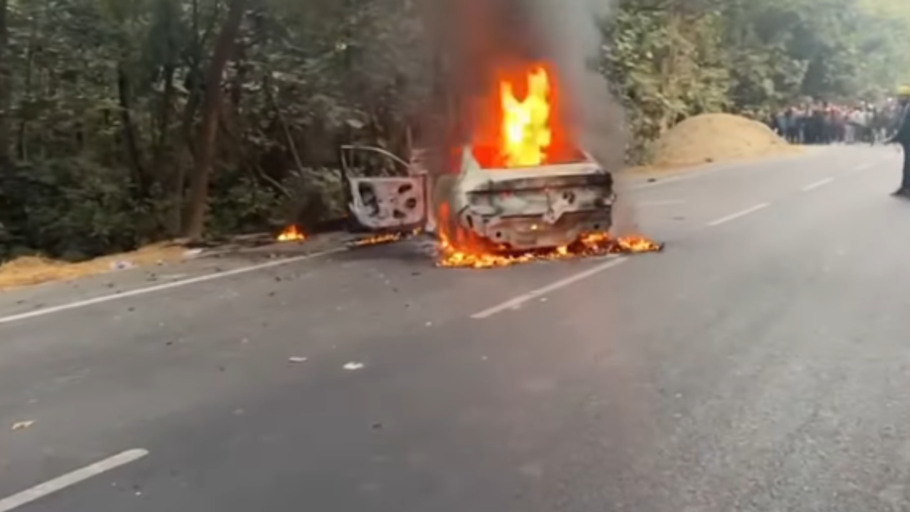 PANTNAGAR FIRE ACCIDENT: पंतनगर थाना क्षेत्र के टांडा रोड पर आज सुबह एक खौफनाक सड़क हादसा हुआ। हल्द्वानी से रुद्रपुर की ओर जा रही एक तेज रफ्तार कार और सामने से आ रही पिकअप में जोरदार टक्कर हो गई। टक्कर इतनी भीषण थी कि दोनों वाहनों में आग लग गई। हादसे में कार सवार चार लोगों और पिकअप चालक को हल्की चोटें आईं।