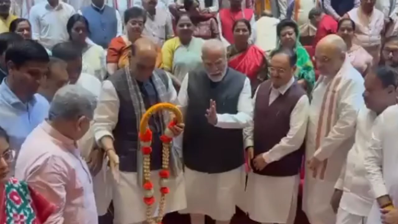 PM MODI: संसद भवन स्थित जीएमसी बालयोगी सभागार में राष्ट्रीय जनतांत्रिक गठबंधन (NDA) संसदीय दल की बैठक का आयोजन किया गया। यह मानसून सत्र के दौरान NDA की पहली संयुक्त बैठक रही, जिसमें भारतीय जनता पार्टी (BJP) के साथ सभी सहयोगी दलों के सांसदों ने हिस्सा लिया। पीएम मोदी का स्वागत ‘हर हर महादेव’ और ‘भारत माता की जय’ के नारों के साथ हुआ। रक्षा मंत्री राजनाथ सिंह, गृह मंत्री अमित शाह और बीजेपी अध्यक्ष जेपी नड्डा ने उन्हें माला पहनाकर सम्मानित किया। बैठक में पहलगाम आतंकी हमले में शहीद हुए जवानों को भावभीनी श्रद्धांजलि दी गई और भारतीय सेना के साहस व शौर्य की सराहना की गई।