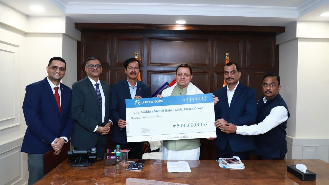 UTTARAKHAND CM RELIEF FUND: मुख्यमंत्री पुष्कर सिंह धामी से आज नई दिल्ली में लार्सन एंड टुब्रो (L&T) के प्रतिनिधिमंडल ने शिष्टाचार भेंट की। इस अवसर पर एल एंड टी समूह ने उत्तराखण्ड में हाल ही में आई प्राकृतिक आपदाओं से प्रभावित लोगों की सहायता के लिए मुख्यमंत्री राहत कोष में ₹5 करोड़ (पांच करोड़ रुपये) की सहायता राशि प्रदान की। मुख्यमंत्री धामी ने एल एंड टी के इस सामाजिक उत्तरदायित्वपूर्ण सहयोग की सराहना करते हुए कहा कि संकट की घड़ी में कॉर्पोरेट सेक्टर का योगदान राज्य सरकार के लिए बड़ी सहायता साबित होता है।